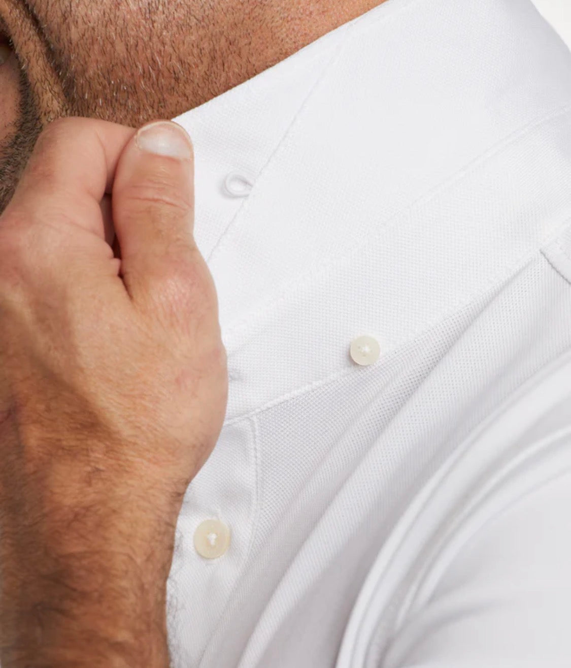 - Self-stay collar featuring our signature under-buttons
